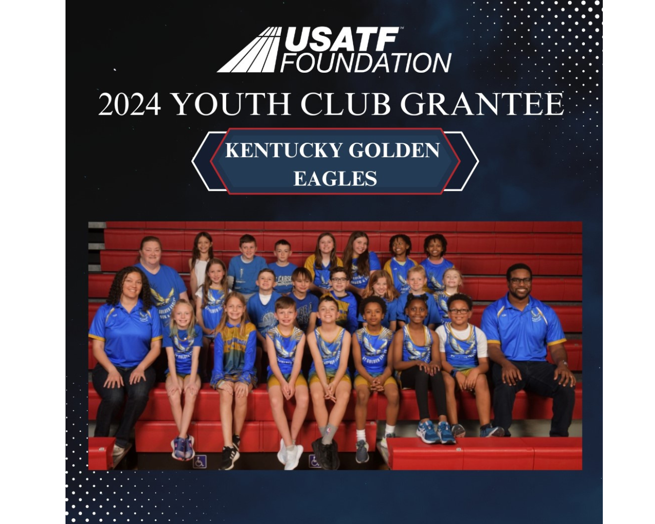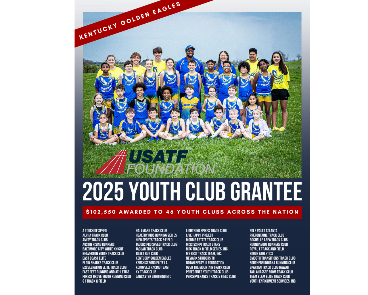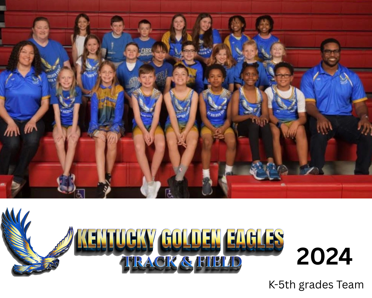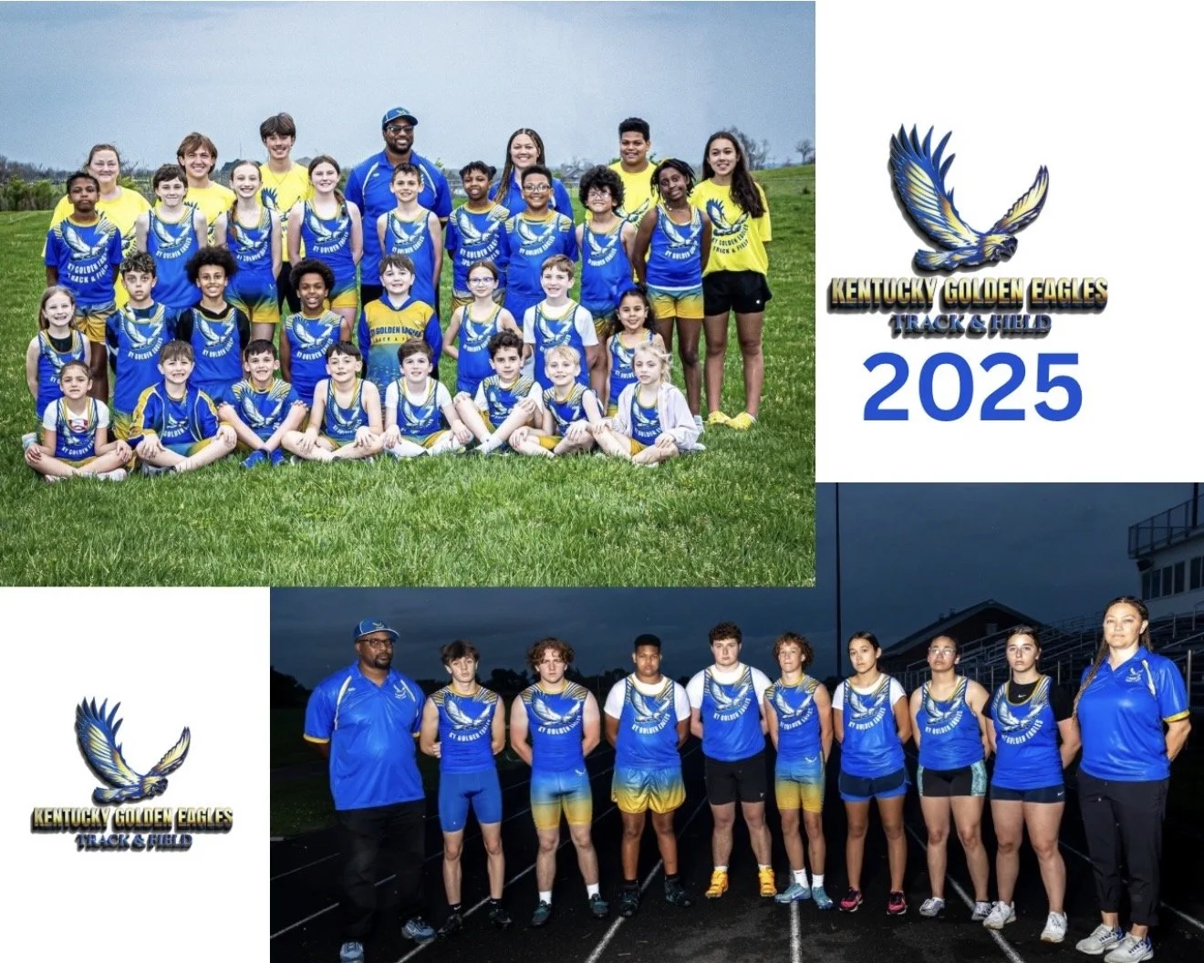 Founded in 2023 with the inaugural season in 2024, the Kentucky Golden Eagles (KGE) became Madison County’s only youth track and field club focused on elementary-aged athletes. Based in Richmond, KY, KGE is a fast-growing 501(c)(3) nonprofit dedicated to developing young athletes through both competitive and non-competitive opportunities. As an Amateur Athletic Union (AAU)-certified team, KGE competes in local and regional meets during the outdoor season while also offering skill-focused training sessions. Starting in 2025, the club expanded to welcome 6th–12th grade athletes after their school track season is complete. With a mission to build discipline, confidence, and community, KGE fosters a family-friendly, high-energy environment where athletes are encouraged to grow and soar.